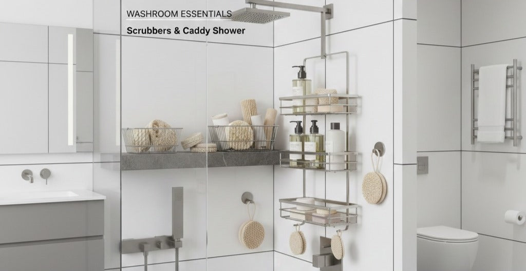 Shower Caddy Corner Shelf with Soap Holder, No Drill Adhesive Wall Mounted with Hooks - Rustproof Stainless Steel Rack by ARK.